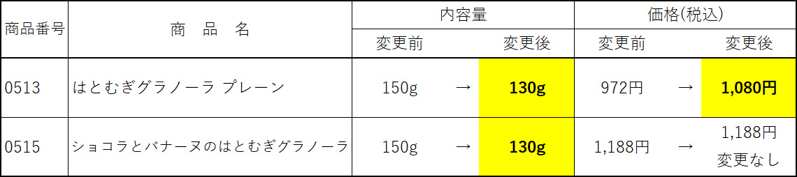 2025年10月3日 「はとむぎグラノーラ」価格・内容量改定のお知らせ