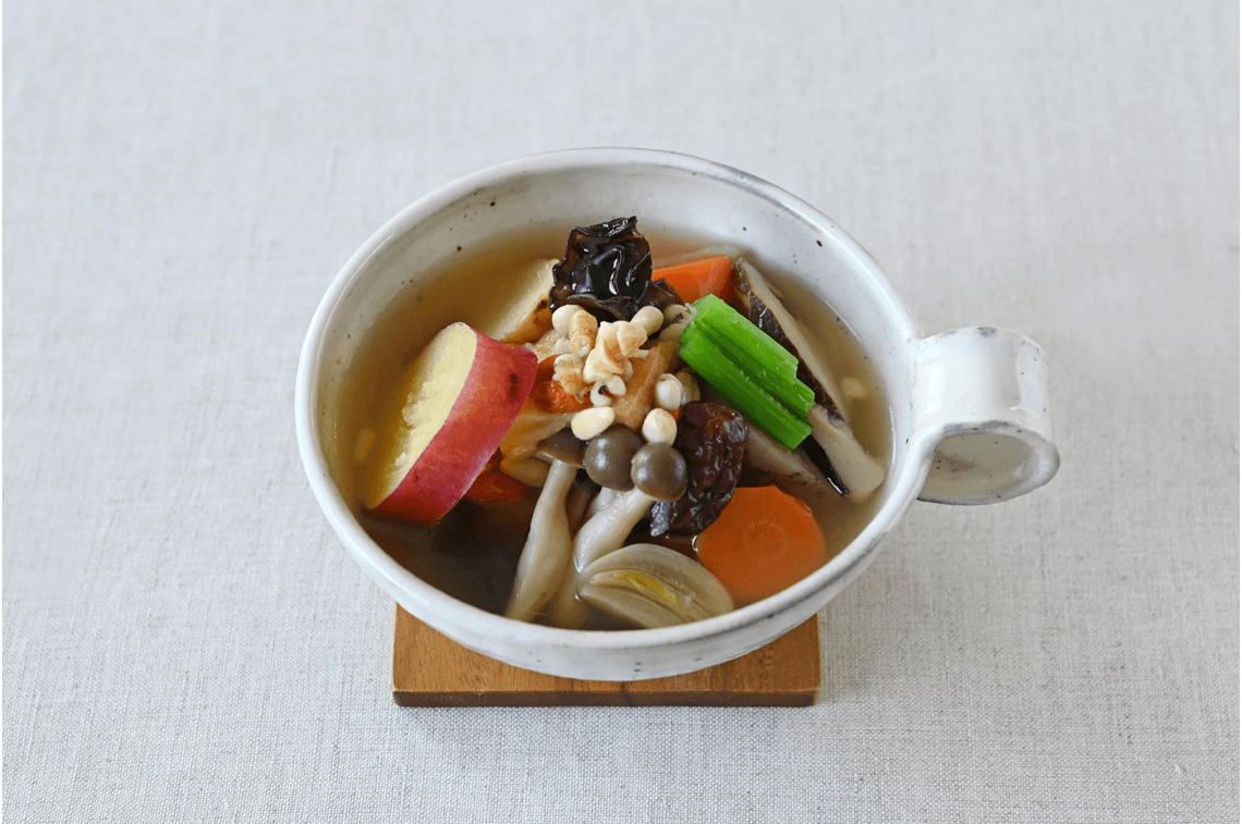 はとむぎ入り野菜の参鶏湯風スープ